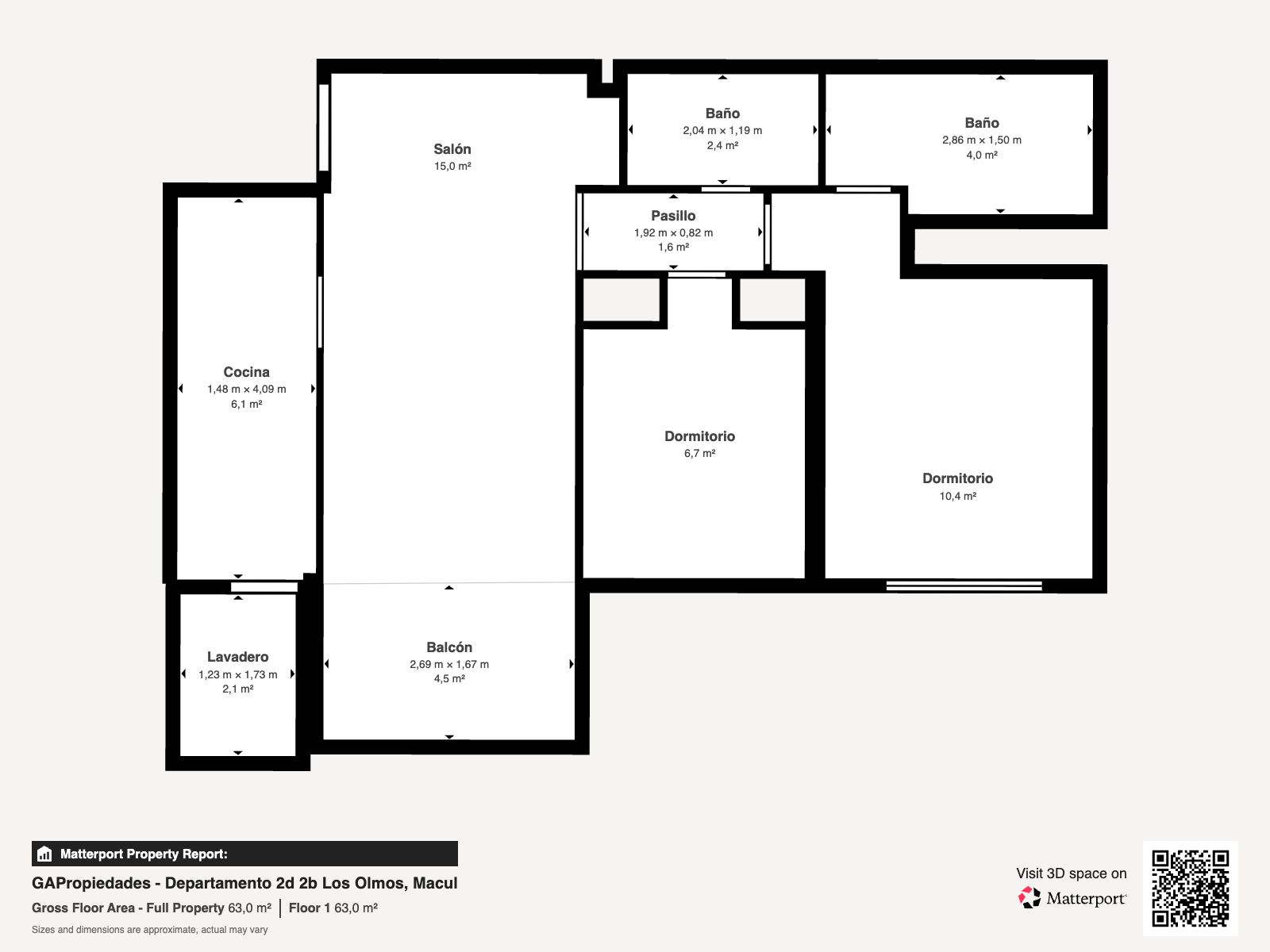 Terminaciones y comodidades interioresLa propiedad se encuentra en muy buen estado de conservación. El programa interior ofrece un estar-comedor integrado, cocina, logia y terraza. Entre sus terminaciones destacan:- Piso flotante en áreas principales y piso vinílico en otros recintos.
